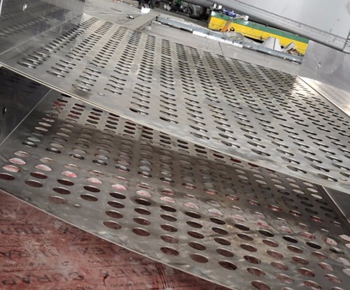 脫硫塔、噴淋塔、冷卻塔、濕電除塵等脫硫脫銷除塵設備煙氣均布裝置,材質一般有304,316L,2205,2507,1.4529,C-276等,厚度2-4mm,通孔率35-45%,圓孔直徑一般35mm,托盤的大小根據塔體的直徑變化,合金托盤整套設備包含:托盤主體,抱箍,夾板,定矩管,螺栓組件等。一般裝在脫硫脫銷設備下氣室,高度根據塔大小確定。