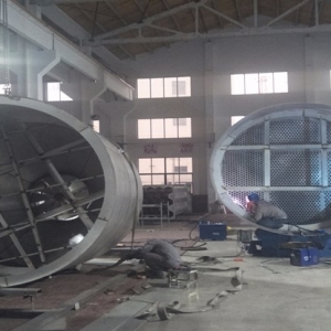 工業廢氣經離心風機輸送至脫硫塔,經脫硫塔內部的合金托盤,格柵,噴淋等配件進行對氣體的處理,從而達到******對工業廢氣的排放標準。