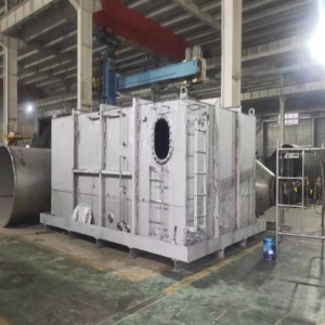 船舶堿液柜是船舶洗滌塔的配套設備,作用是脫硫脫銷的堿液儲存以及稀釋的作用。材質一般為316L,內置加熱盤管,主體焊接我廠采用等離子自動焊焊接,一面焊接雙面成型,焊縫均勻美觀,成型效果好,角焊縫選用氬弧焊打底,氣保焊蓋面,確保焊縫不漏水漏氣,